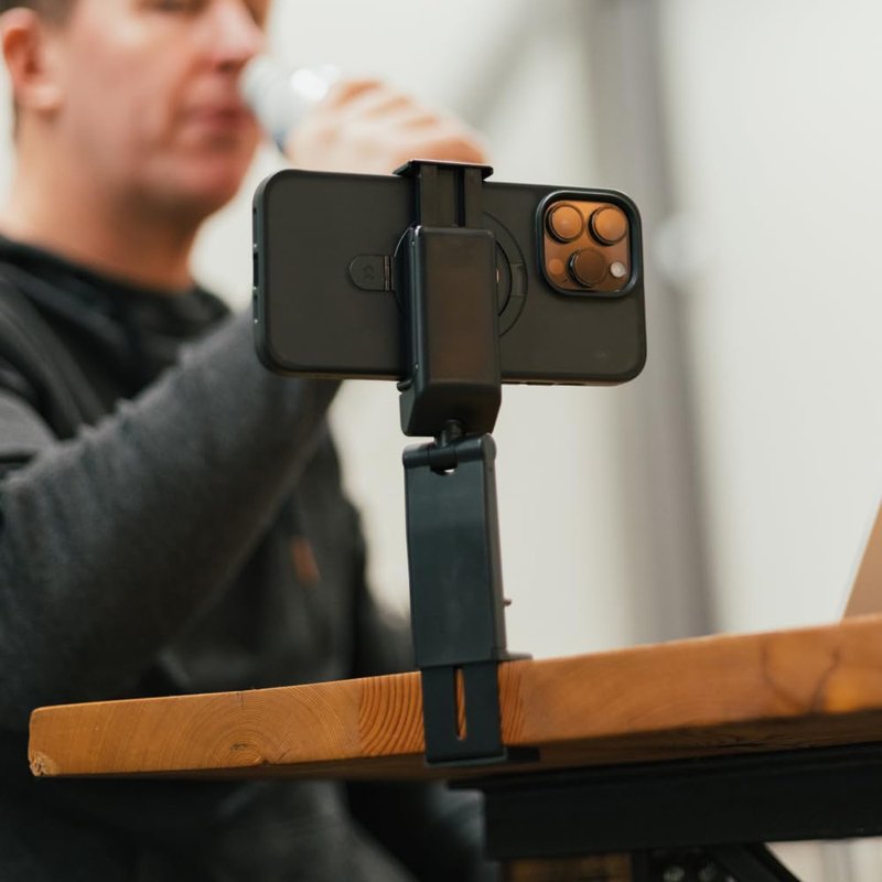 2. Mėgaukitės iphone stovo patogumu, kad ir kur keliautumėte. Telefono pagrindo spaustukas su neslystančiu padėkliuku
