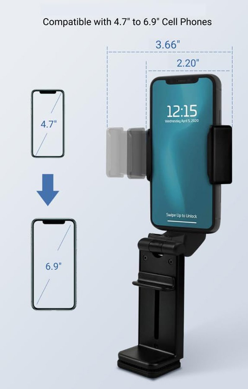 3. Nešiojamasis laikiklis turi viršutinį spaustuką, kuris tinka telefonams, kurių didžiausias plotis yra 3,9 colio (nuo 4,7 iki 6,9 colio