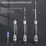 Ideal for repairing iPhones, laptops, cameras, watches, glasses, drones, electric fans, furniture and many other devices. Thanks to the extendable tips and extension lever, working in narrow spaces and with large screws becomes easier.