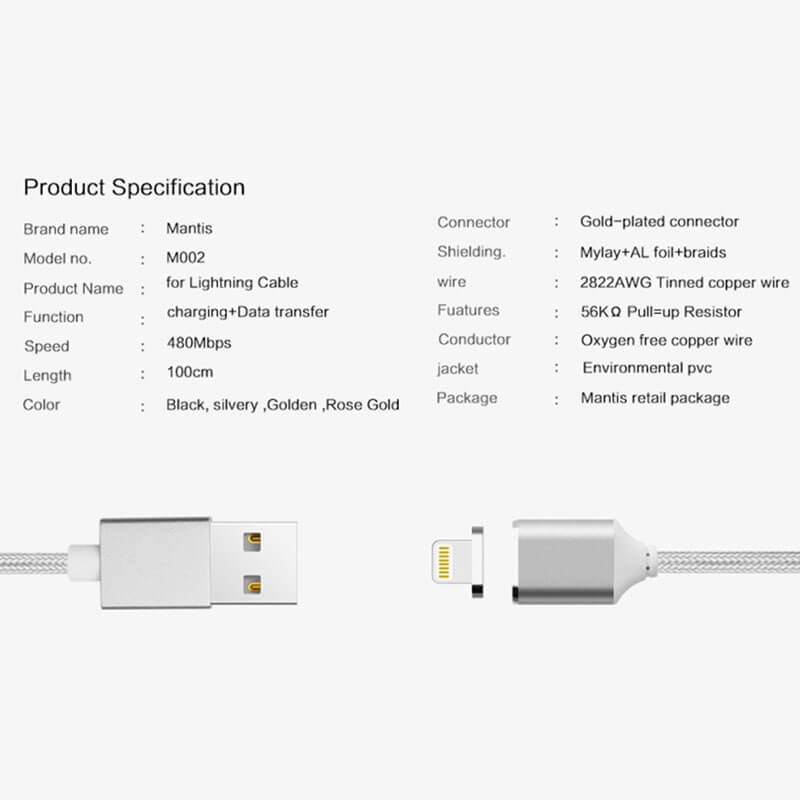 Magnetinis krovimo laidas Mantis skirtas iphone